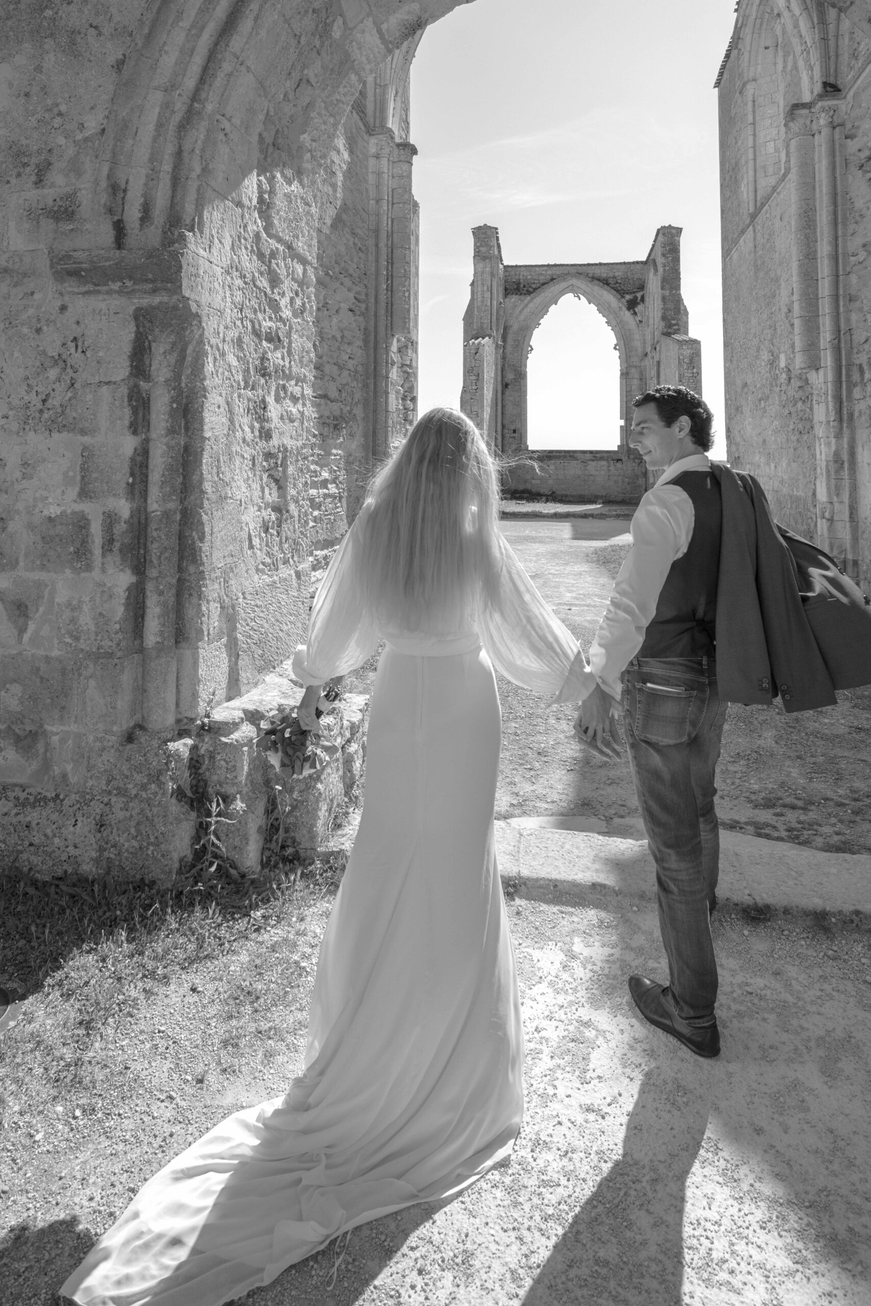 The ruins of the 13th century abbey where this intimate ceremony took place made the perfect location, and provided some shade for the intense love of this beautiful couple.