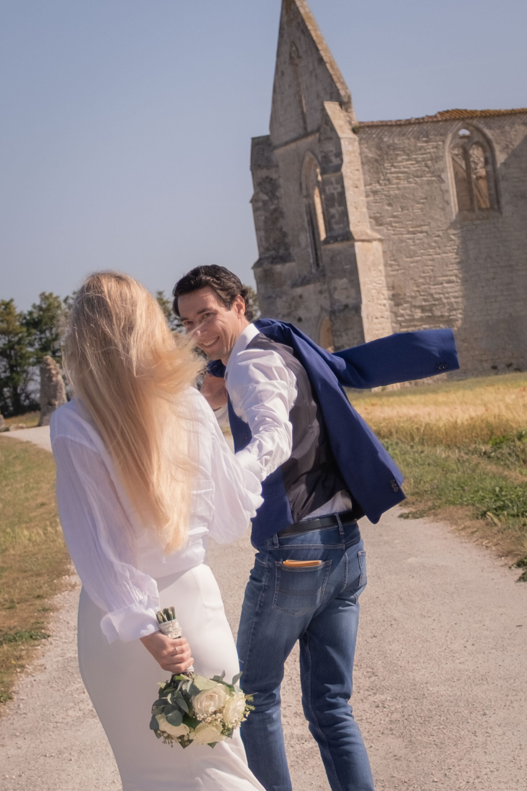 Romain remembered a wonderful summer holiday with his family on Île de Ré. It was the perfect location for their vow renewals. So Romain and I planned a beautiful day full of love.